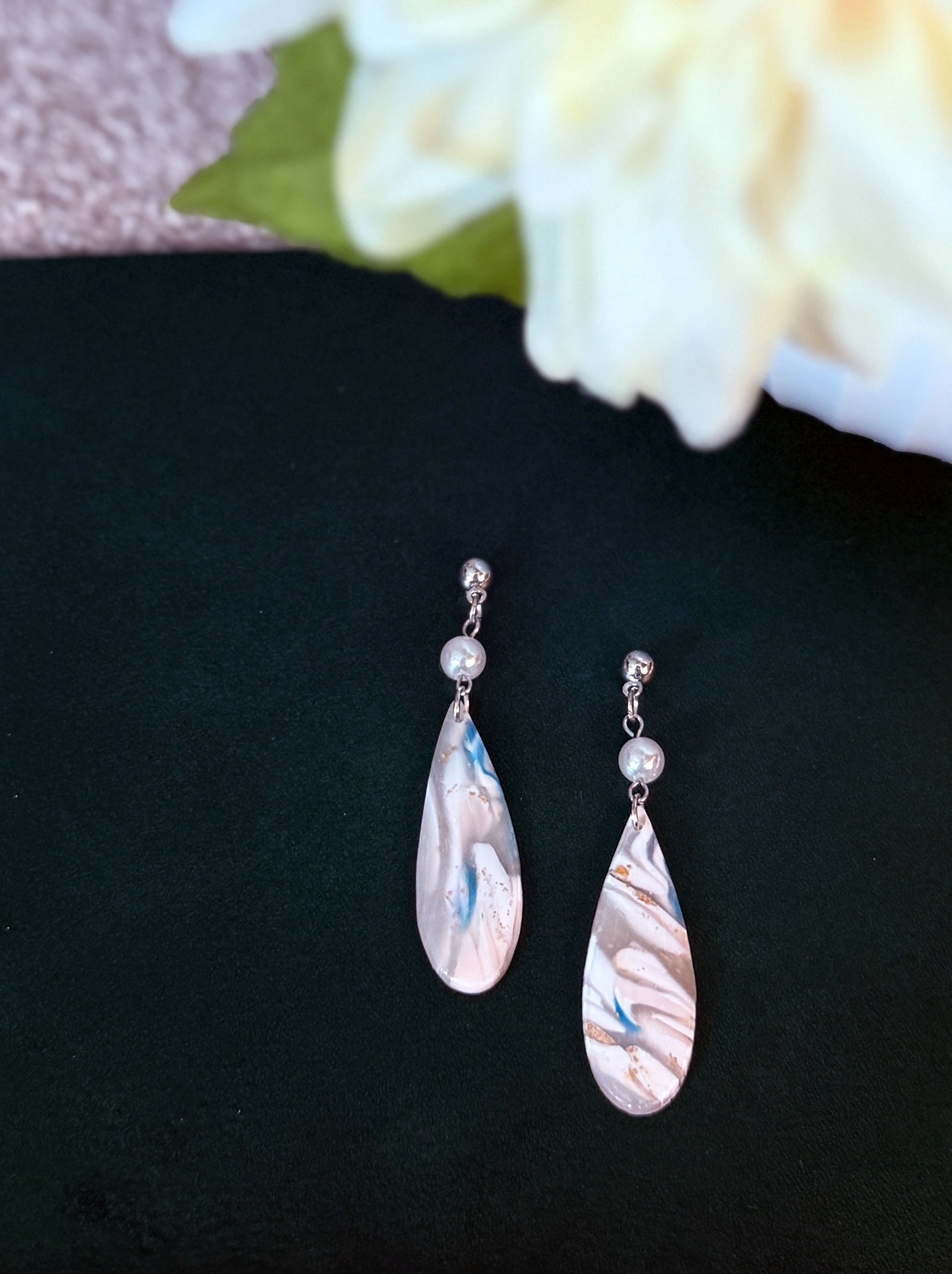 - Material: Polymer clay, pearl beads, sliver plated earring post