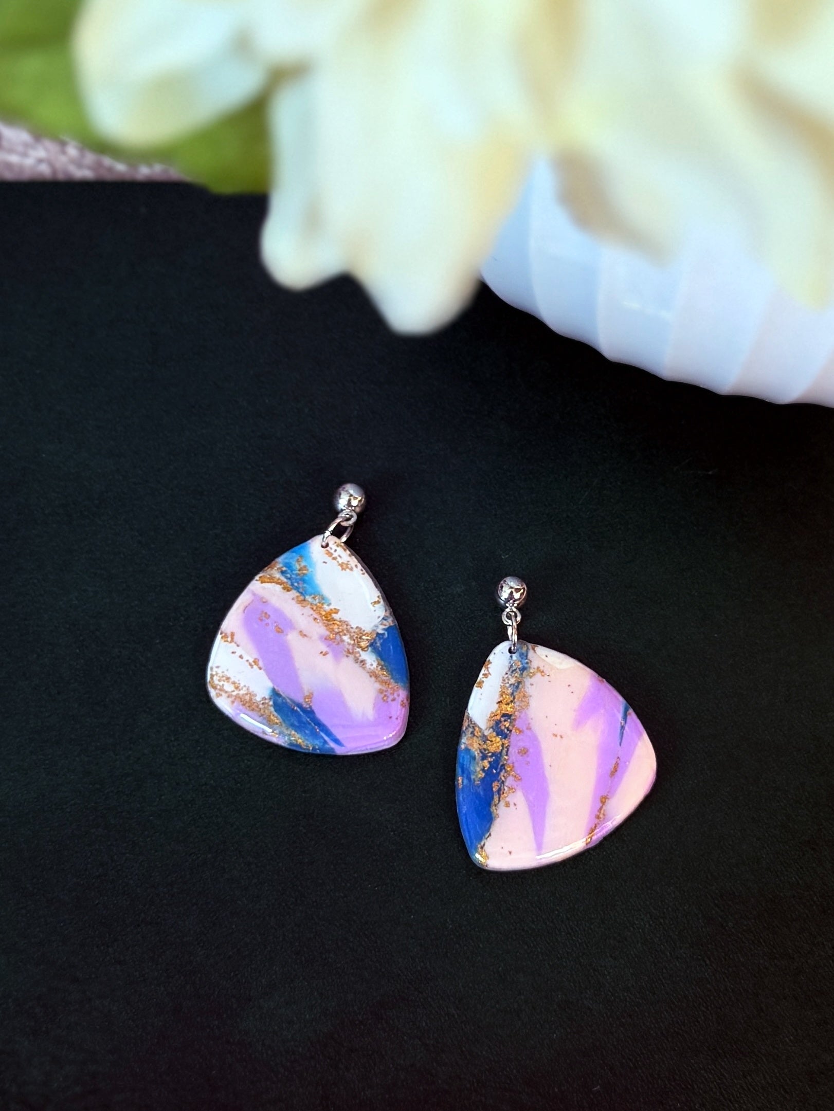 This series blends shades of blue, pink, and purple with delicate gold leaf and pearl details. Each piece captures the fleeting beauty of drifting starlight, elegant and dreamlike. Each piece is handmade, making every pair slightly unique while keeping the same elegant aesthetic.
